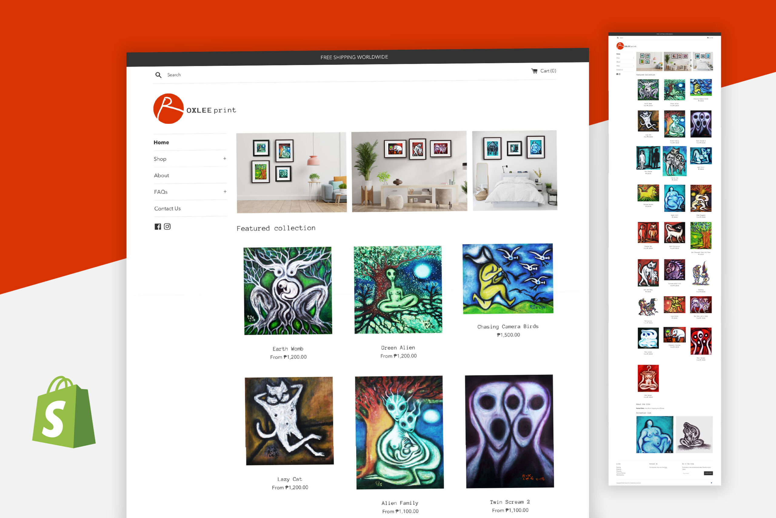 RoxleePrint is the official shopping site of Roxlee, selling prints of his paintings. Roxlee is a Filipino experimental filmmaker and visual artist. I designed and developed his e-commerce site using Shopify and integrated it with his Facebook page and Instagram account.